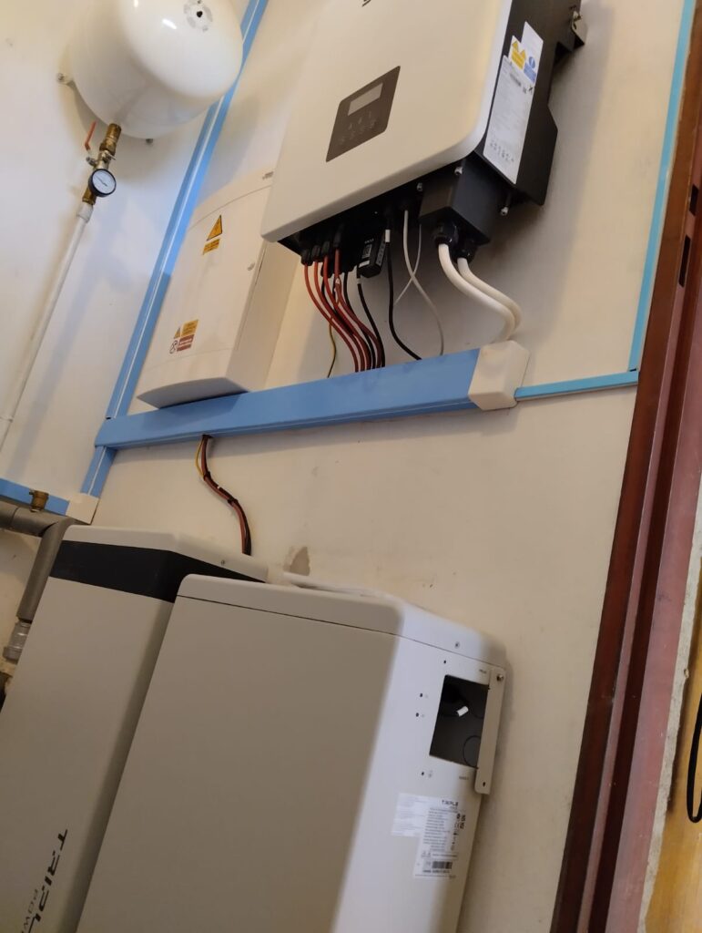 FVE na střeše rodinného domu v obci Dobré Pole. Výkon: 8,1 kWp, střídač: 10,0 kW, akumulace: 11,6 kWh