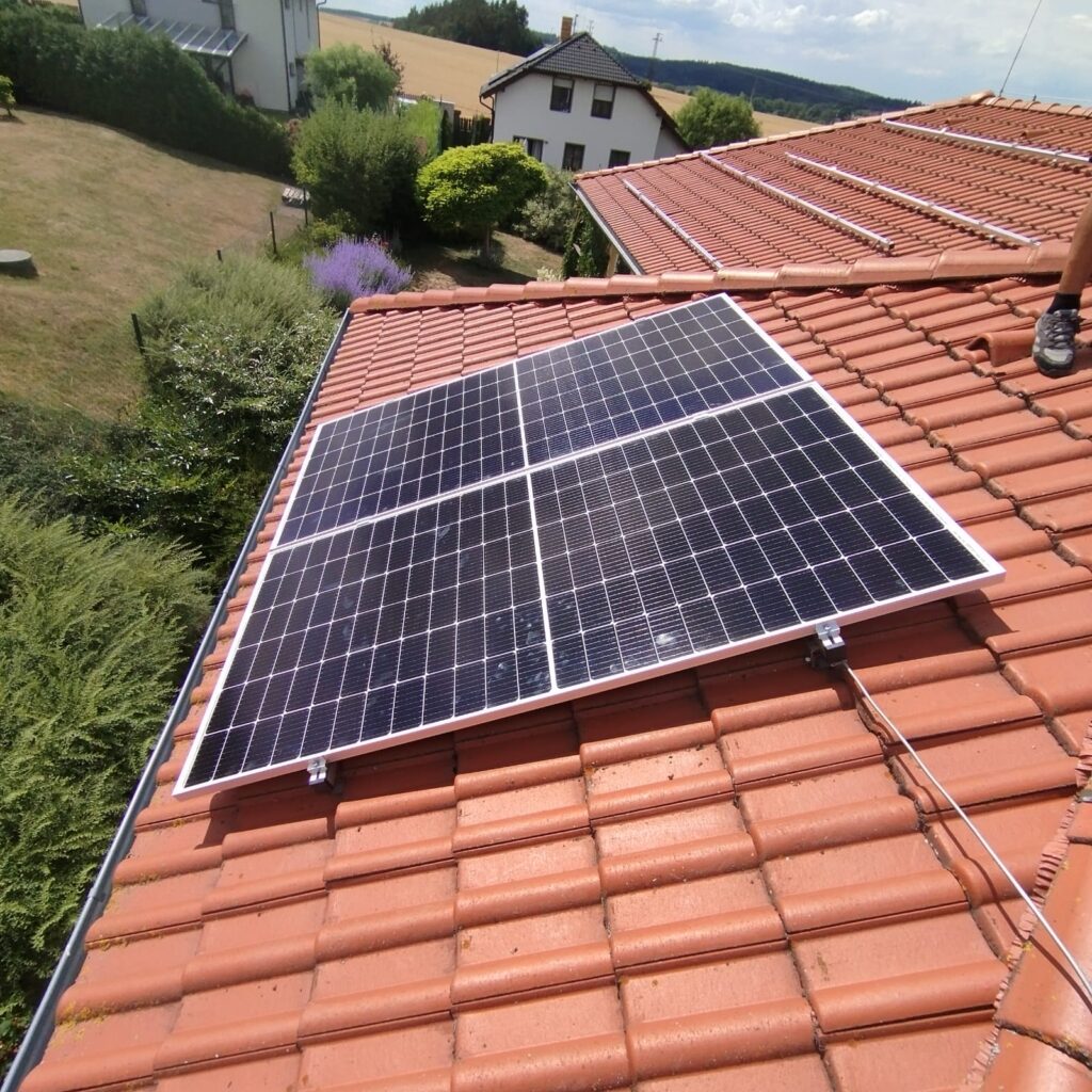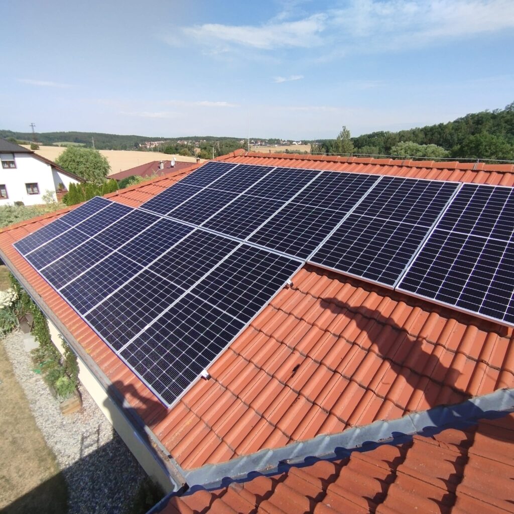 Fotovoltaická elektrárna na střeše rodinného domu v obci Velká Dobrá. Výkon: 9,9 kWp, střídač: 10,0 kW, akumulace: 11,6 kWh